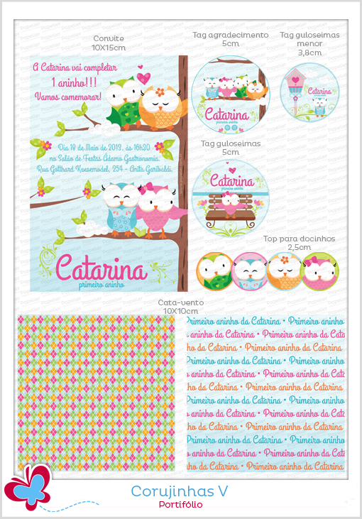Neste final de semana aconteceu a comemoração do primeiro ainho da Catarina. A mamãe Camila nos procurou para desenvolver a papelaria digital da festa com o tema Corujinhas.